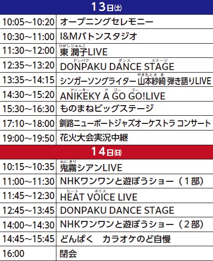 ・時間・内容等は変更となる場合があります。また、天候により中止となる場合もあります。