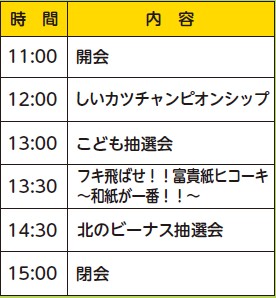 ※悪天候の場合は、音別町文化会館で食材販売と抽選会を行います。