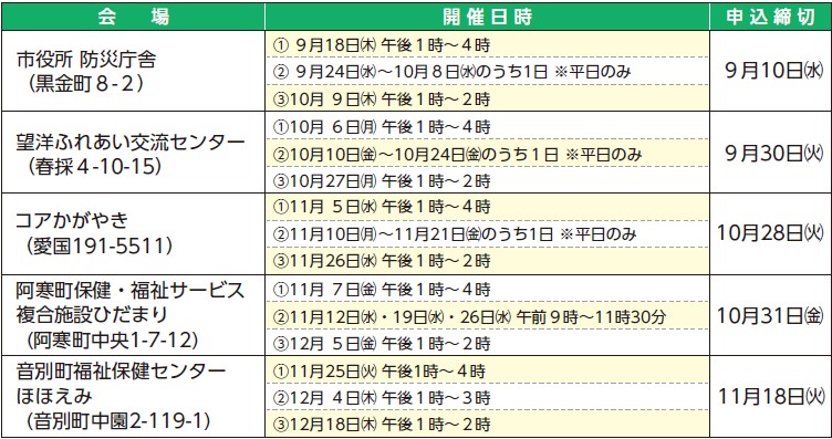 申込・問合先:社会福祉法人 釧路市社会福祉協議会