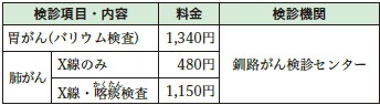 内容:胃・肺・大腸・乳・子宮頸(けい)がん検診・健康診査