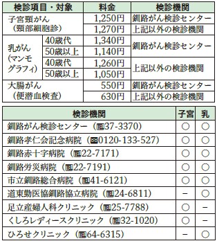 場所・申込方法:釧路がん検診センター(【電話】37-3370)