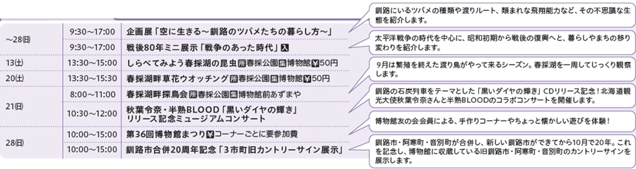 ※特に記載のないものは、参加無料、当日直接会場へ行く催しです。