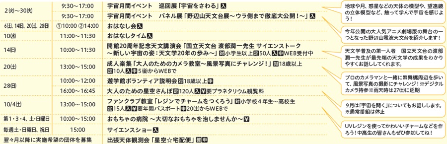 (※2)28(日)16:00~16:45は「大人のための星空さんぽ」です。