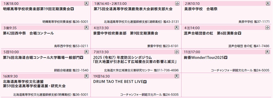 問合せ:コーチャンフォー釧路文化ホール(市民文化会館)