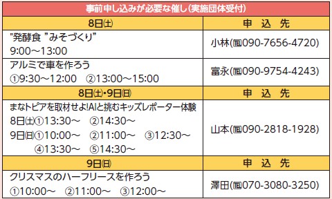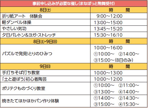 ・定員がある催しや、参加料、材料費、持参する物が必要な催しがあります。詳細はパンフレットをご覧ください。