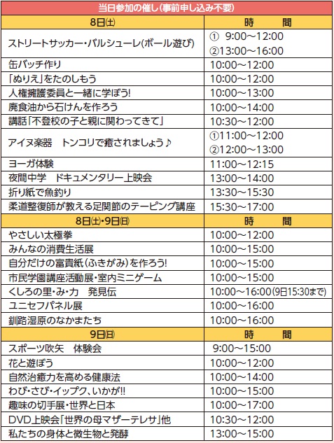 問合先:釧路市生涯学習フェスティバル実行委員会(まなぼっと幣舞内)
