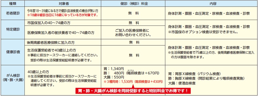 ■健診(検診)の種類・内容・申込先など