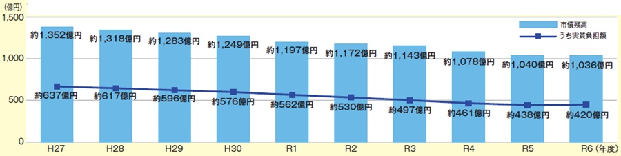 ※実質負担額 市債残高から交付税措置分を差し引いた金額