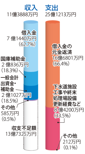 終末処理場や下水道管を整備、更新するための収支
