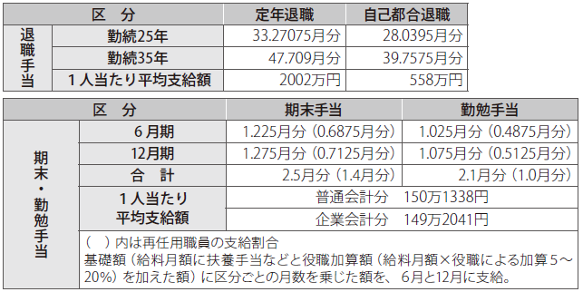 退職手当および期末・勤勉手当の状況