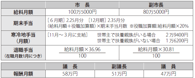 特別職などの給料・報酬・諸手当