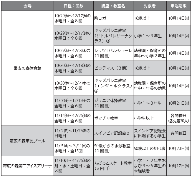 ■9月19日(金)から予約受け付けを開始する教室一覧です。