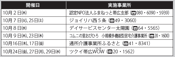 健康 げんき活動コースチャレンジデー 17/34 前の記事 次の記事 発行日 : 2025年10月01日 自治体名 : 北海道帯広市 広報紙名 : 広報おびひろ 令和7年10月号 介護予防のための運動などを体験できます。開催場所や時間など、詳細は各事業者へ問い合わせください。 対象:65歳以上の市民 担当課:介護高齢福祉課 市ホームページID.1006491 Tweet シェアする 帯広市ひきこもり支援事業「ゆっくりんのいばしょ」 令和8年4月からの保育所・幼稚園・認定こども園・学童保育センターの入所申し込みを開始します