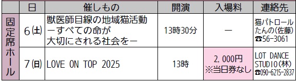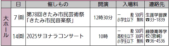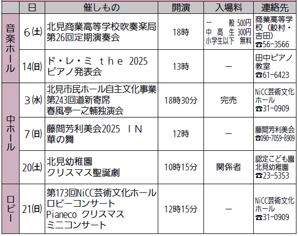 問合せ:北ガス市民ホール(市民会館)
