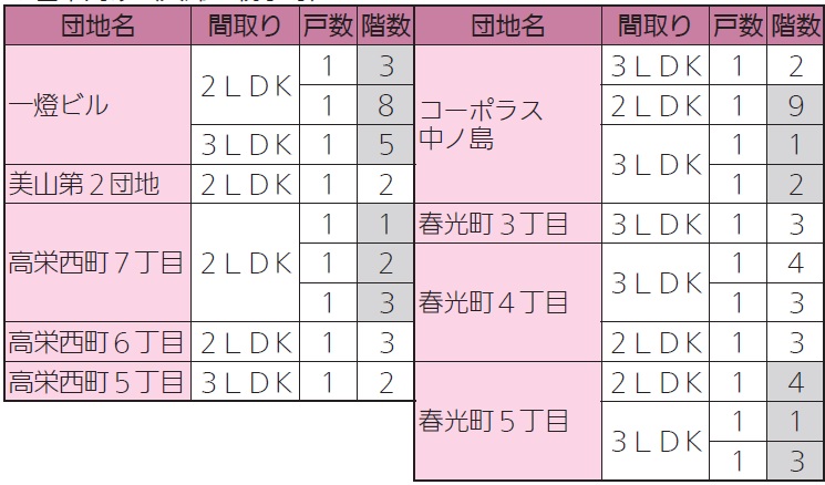 申し込み方法や募集住宅の詳細はお問い合わせください。