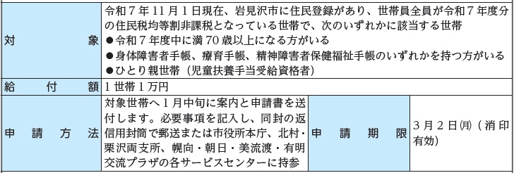 物価高騰による影響が大きい令和7年度住民税均等割非課税の高齢者や障がいのある方、ひとり親世帯へ給付金を支給します。