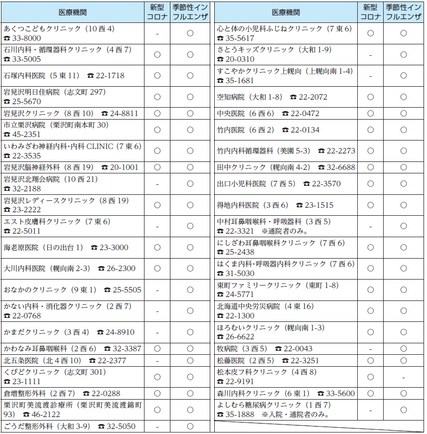 ※長期入院・入所などの理由で市外の医療機関で接種を希望する方は、岩見沢保健センターにお問い合わせください。
