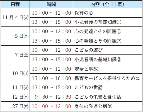 ファミリーサポートなど子育て支援活動を行いたい方を対象とした講習会です。すべての講座を受講した方に(一財)女性労働協会認定の修了証を授与します。