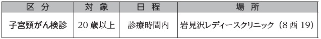 申込・問合先:受診を希望する日の3週間前までに岩見沢保健センターへ電話または市ホームページから予約