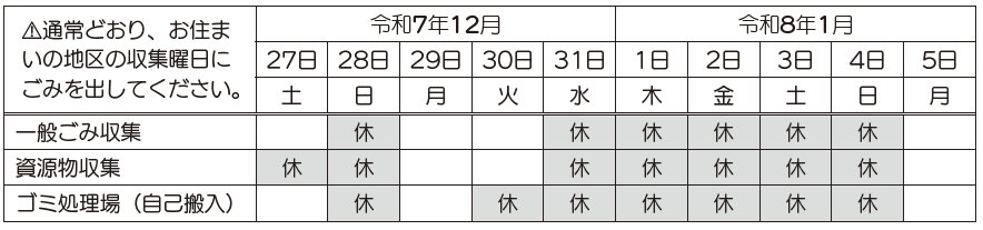 12月23日(火)正午以降の受け付けは、1月7日(水)の収集となります。