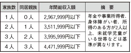 [収入基準:給与所得者が1人の時の年間総収入額]