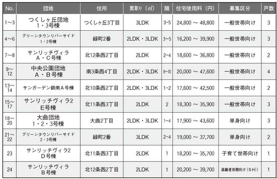 問い合わせ:道営住宅指定管理者 有限会社 藤原工産