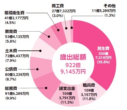 民生費:障がい者や高齢者に対する福祉、子育て支援など