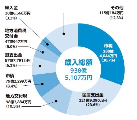 地方消費税交付金:市の人口などに応じて道から交付されたもの