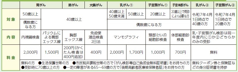 ■がん検診対象者(令和7年4月1日~令和8年3月31日までに下記年齢になる方)、および料金表