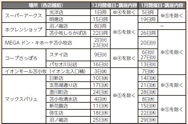 ところ・申し込み・詳細:12月1日(月)から各講習の10日前まで