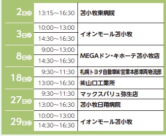 ※日時などが変更になる場合がありますので、最新情報は北海道赤十字血液センターHPでご確認ください