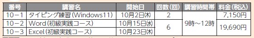 ところ・申し込み・詳細:9月1日(月)から各講習日の約10日前までに
