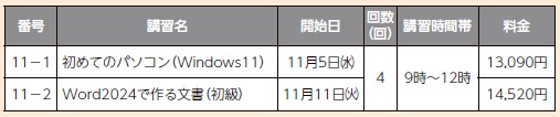 ところ・申し込み・詳細:10月1日(水)から各講習日の約10日前までに