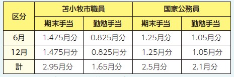 民間企業の賞与にあたる期末・勤勉手当は、給料と扶養手当の合計を基礎にして定められています。