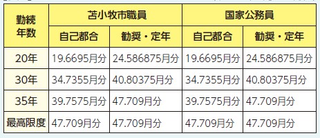 退職手当の支給割合は、勤続年数や退職理由により下表[表1]のとおり定められています。令和6年度の退職者数と平均支給額は下表[表2]のとおりです。
