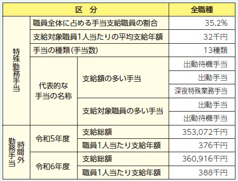 出動手当…消火作業または救急業務に従事した消防職員への手当