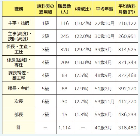 職員の給料月額は、職務の複雑・困難・責任の度合いに応じて級別に分類され、給料表によって定められています。