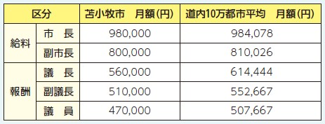 特別職の給料・報酬は市議会の審議を経て「苫小牧市特別職の職員の給与に関する条例」で定められています。