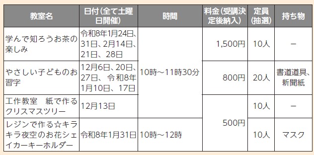 申し込み・詳細:11月4日(火)~7日(金)に電話で