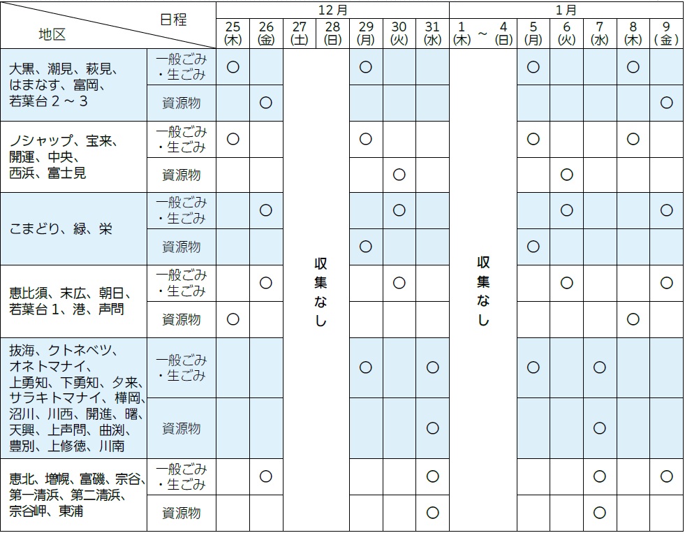 ・年始の収集は、北地区・郡部は1月7日(水)、南地区は1月14日(水)が収集日です。