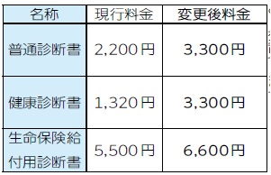 このほかにも診断書・証明書等の料金が変更になっております。詳細はホームページをご確認ください。