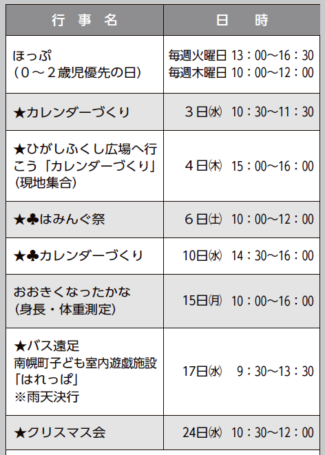 ■子育て支援センターはみんぐ 12月の子育ての広場