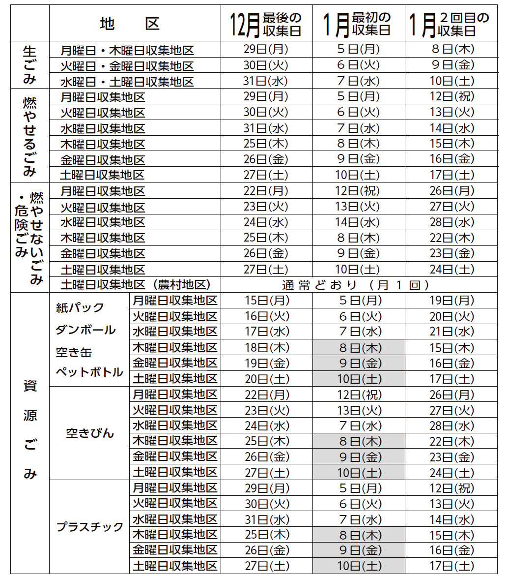 ※12月31日(水)の収集作業は、全て午前中で終了します。
