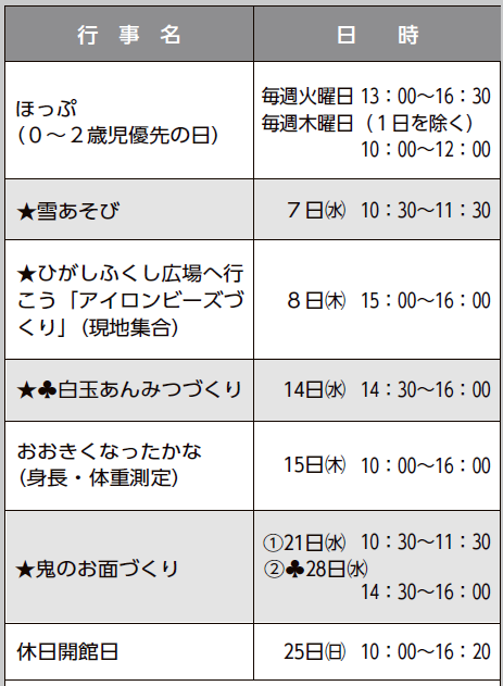 ※スペード印がついているものは、小学校低学年の兄姉も参加可