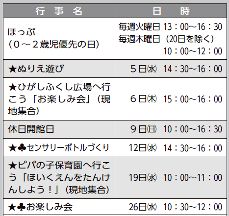 ※スペード印がついているものは、小学低学年の兄姉も参加可