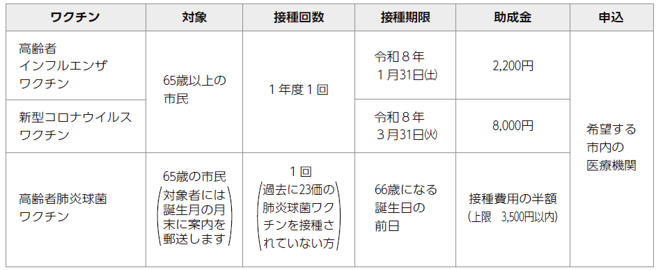 ※帯状疱疹(ほうしん)ワクチンについては、対象者へ5月に案内文書を郵送しています。助成を受けられるのは今年度限りですので希望される方は、接種の機会を逃さないようご注意ください。