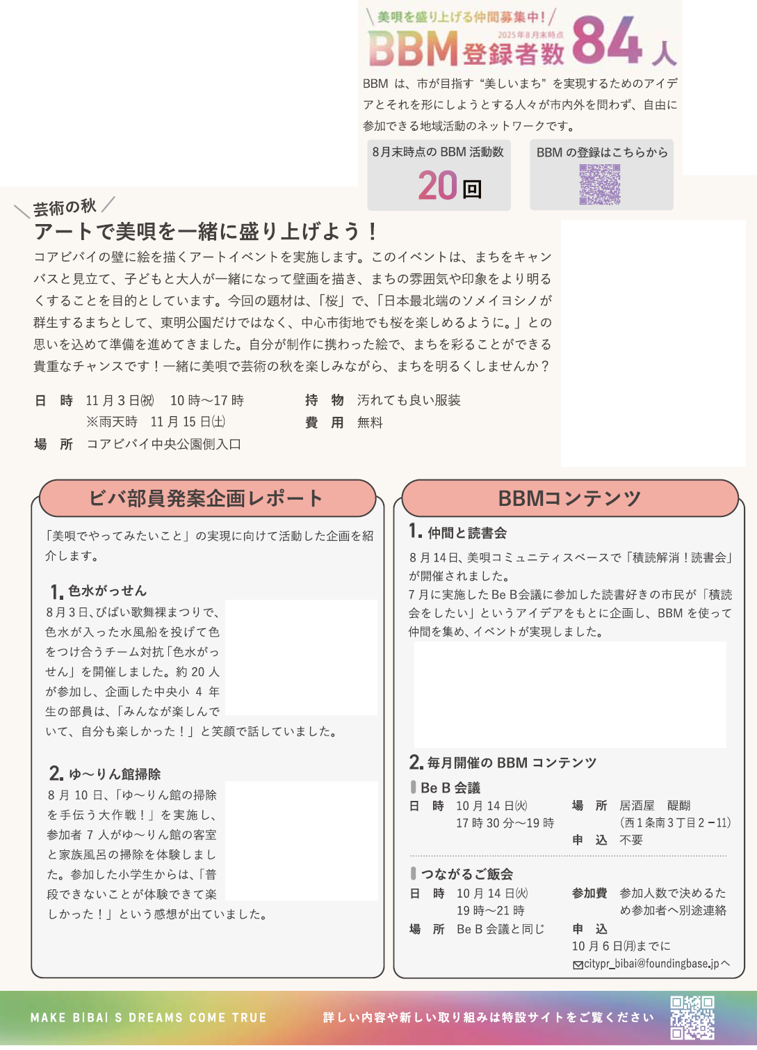 イベント 美唄シティプロモーション推進事業 BBM通信 9/39 前の記事 次の記事 発行日 : 2025年10月01日 自治体名 : 北海道美唄市 広報紙名 : 美唄市広報「広報メロディー」 2025年10月号 ~Bibai Beautiful Movement~ Tweet シェアする お心遣いに心より感謝します 地域安全ニュース