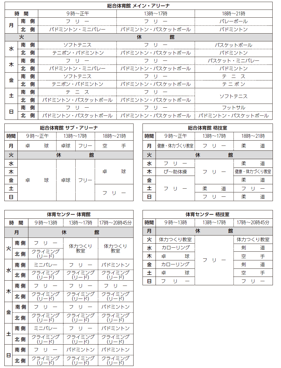 ※「フリー」は、利用者が行いたい競技種目で使用できます。