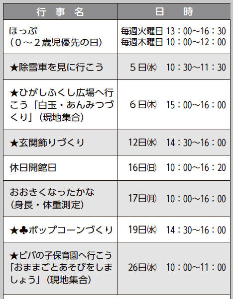 ※スペード印がついているものは、小学校低学年の兄姉も参加可