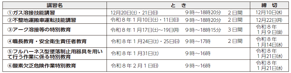 ※定員や受講料など、詳しくはホームページをご確認ください。